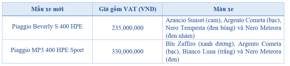 Piaggio Beverly S 400 HPE và Piaggio MP3 400 HPE Sport đã chính thức có mặt tại các showroom chính hãng của Piaggio trên toàn quốc.