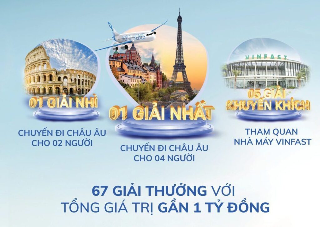 √ 01 giải nhất đi châu Âu cho 04 thành viên gia đình, trị giá 300 triệu đồng;