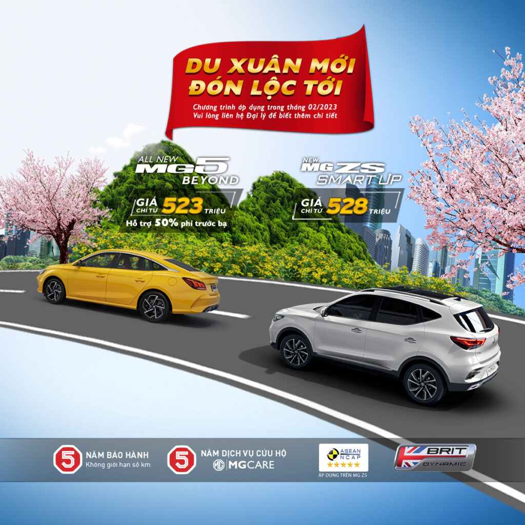Hòa chung cùng không khí tưng bừng chào đón năm mới 2023, với mong muốn tri ân sự ủng hộ và tin tưởng của khách hàng trong thời gian vừa qua, cũng như mang đến sự hỗ trợ tối đa cho những khách hàng có nhu cầu sở hữu những sản phẩm chất lượng từ MG, trong tháng 2 này, MG Việt Nam triển khai chương trình khuyến mãi đặc biệt: “Du xuân mới – Đón lộc tới”.